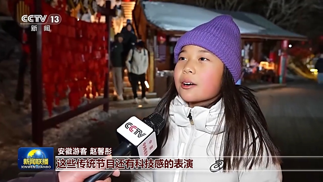 安徽游客 赵馨彤:这些传统节目还有科技感的表演,让我觉得很有年味,我觉得很开心。